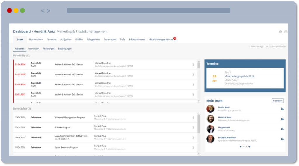 Funktionen des Moduls Mitarbeiter Dashboard